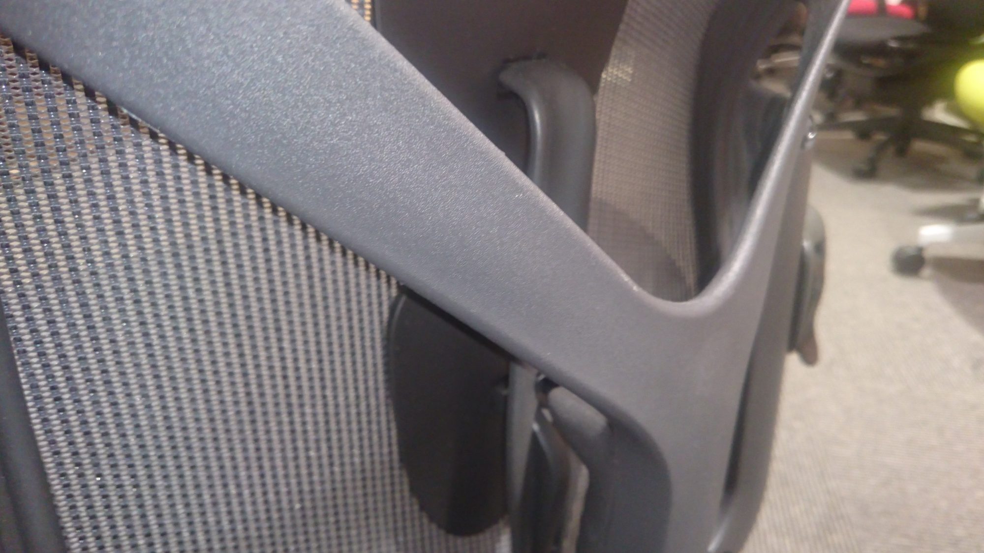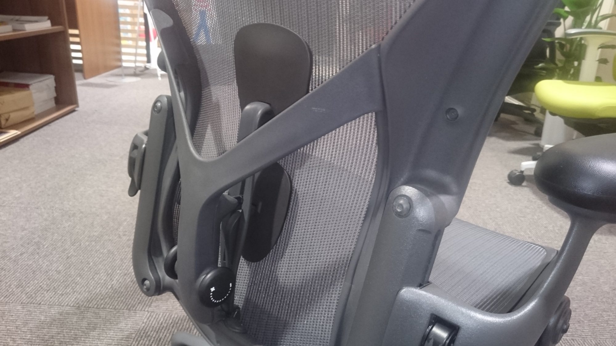 2つ目は、昔は、ランバーサポート機能・ポスチャーフィット機能といわれる骨盤サポート機能でしたが、現在のアーロンチェアリマスタードは、更なる進化をしたポスチャーフィツトSL機能は2つのパッドに分割され、腰椎と仙骨を安定させて背骨もサポートする機能に進化いたしました。