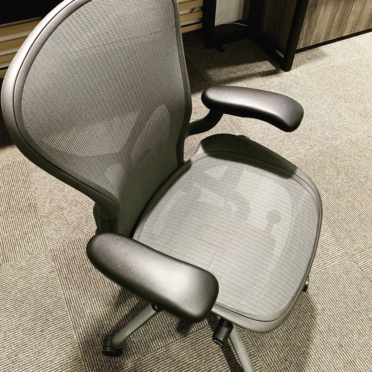 ●アーロンチェアリマスタード固定肘Bサイズグラファイトベースだと