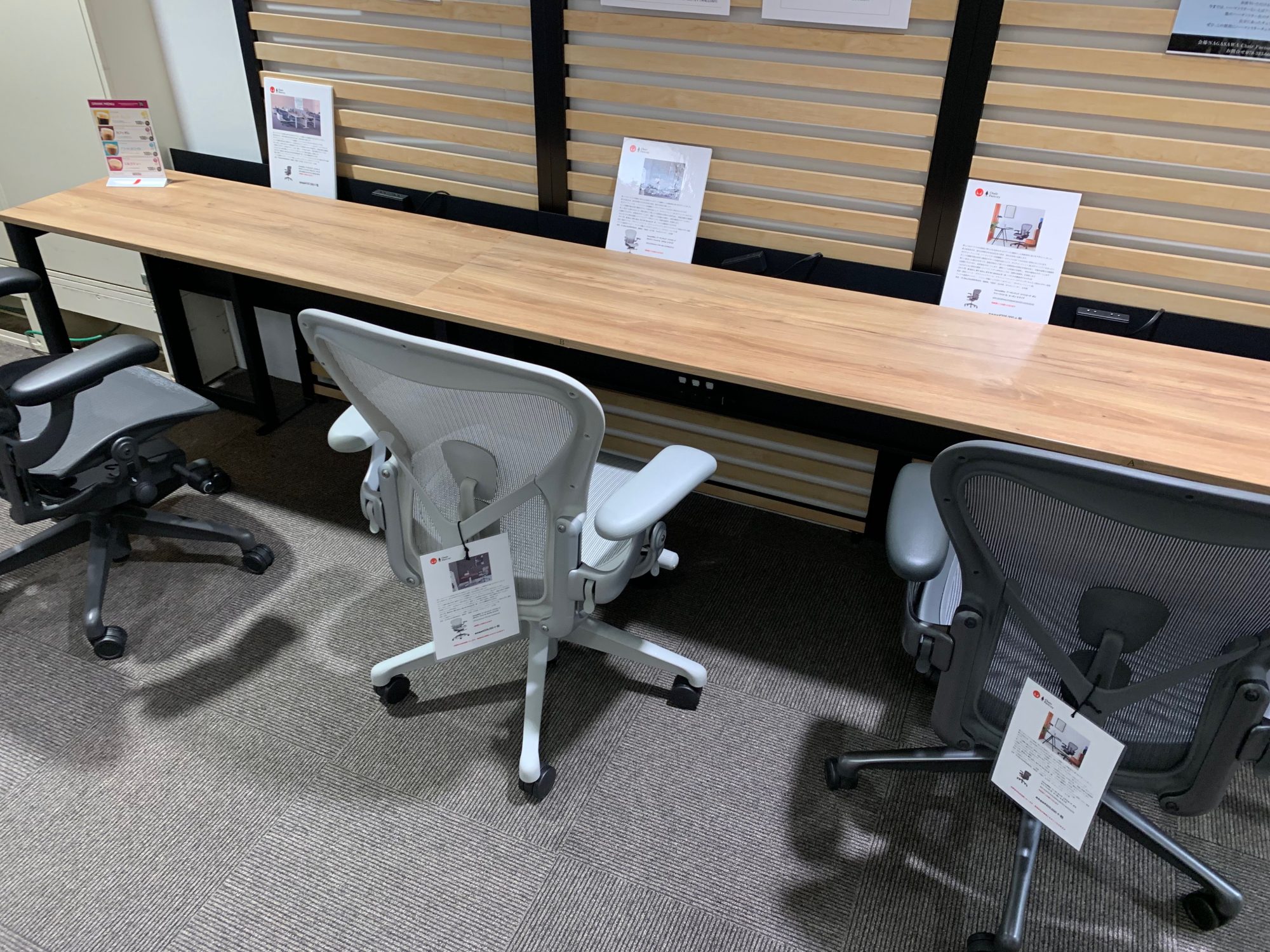当店では、仕事を実際にしながら、アーロンチェアの試座ができるコワーキングスペースを完備