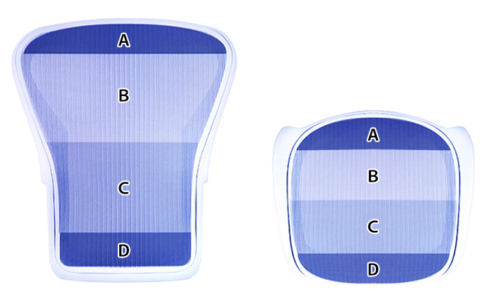 どう分けているかと言うと、A・B・C・Dでメッシュの張りを一番強い部分、強い部分、弱い部分、一番弱い部分というように分けられています。