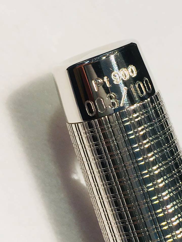 1967年当時の「プラチナ・プラチナ」はボディに銀無垢を使用していましたが、この”センチュリー「ザ・プライム」”プラチナ仕様では、ペン先だけでなくボディにまで プラチナ素材を使用。そして装飾技術の粋を極めた精緻な二重格子柄を再現。格子柄の織りなす輝きのコントラストが美しく、「王者の万年筆」に相応しい究極の1本 として仕上がりました。この佇まいを心ゆくまでお楽しみ頂ければ幸いです。2019年2月5日発売。(プラチナ万年筆株式会社HPより引用)
