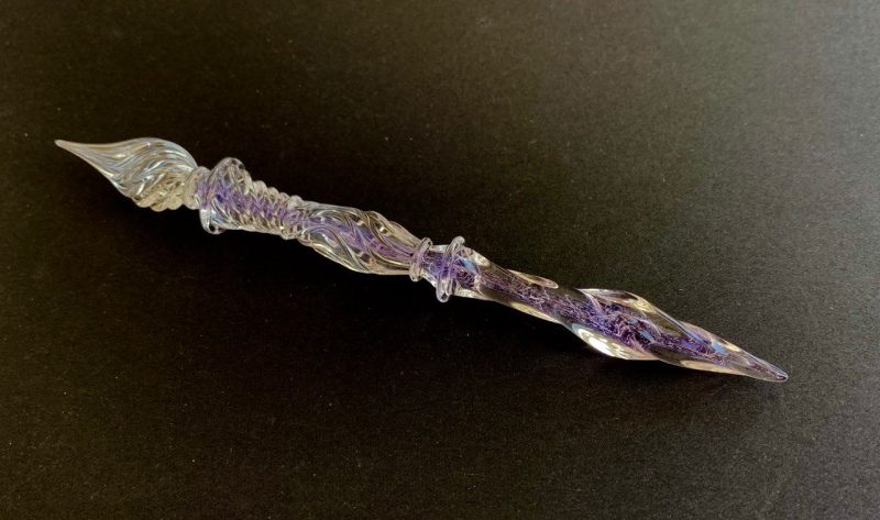 グリップに気泡を内包した紫色のガラス材料を使用したガラスペンです。