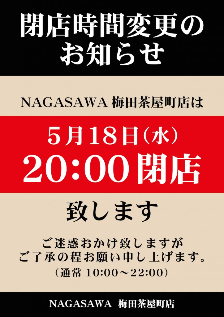 - NAGASAWA梅田茶屋町店 TEL:06-6292-7660