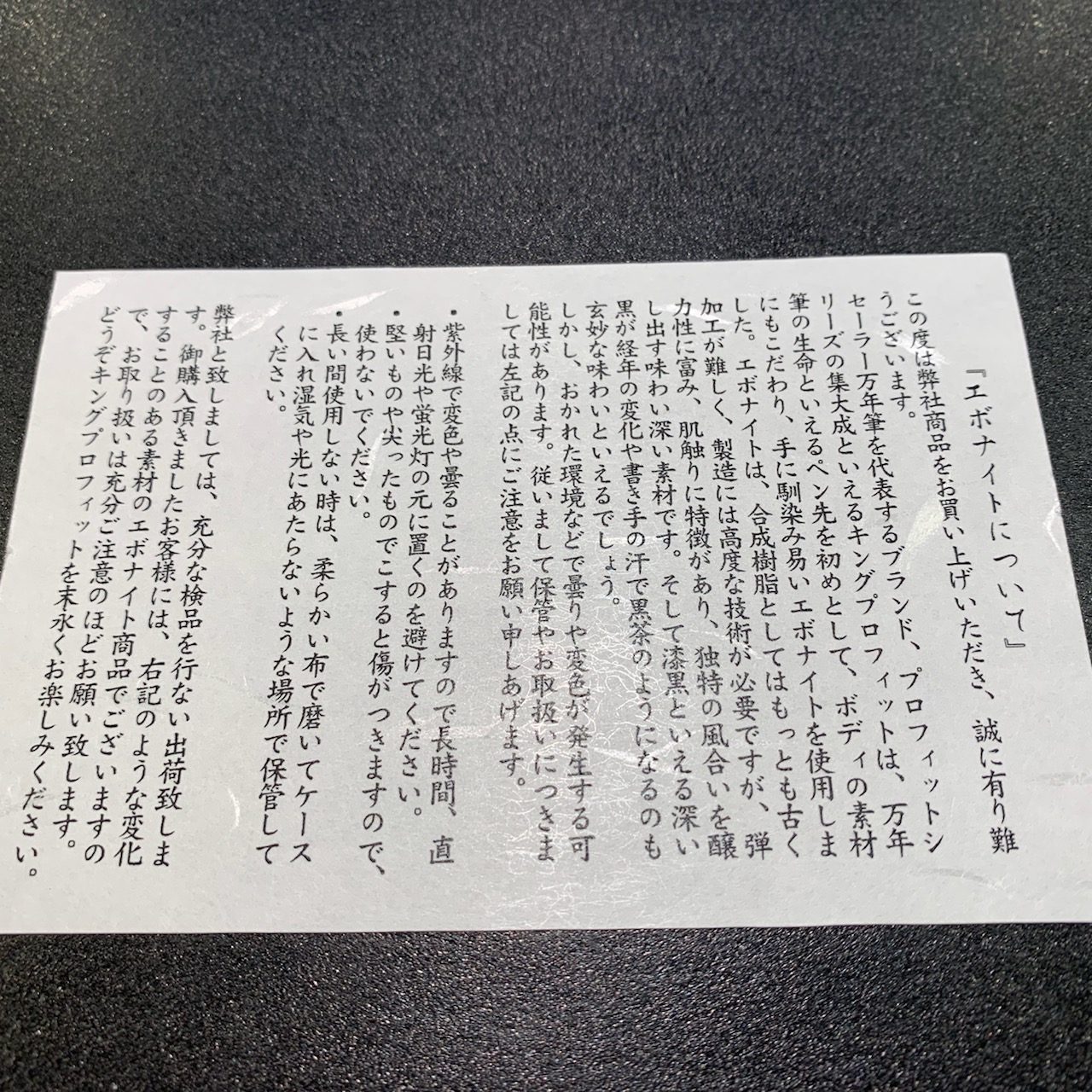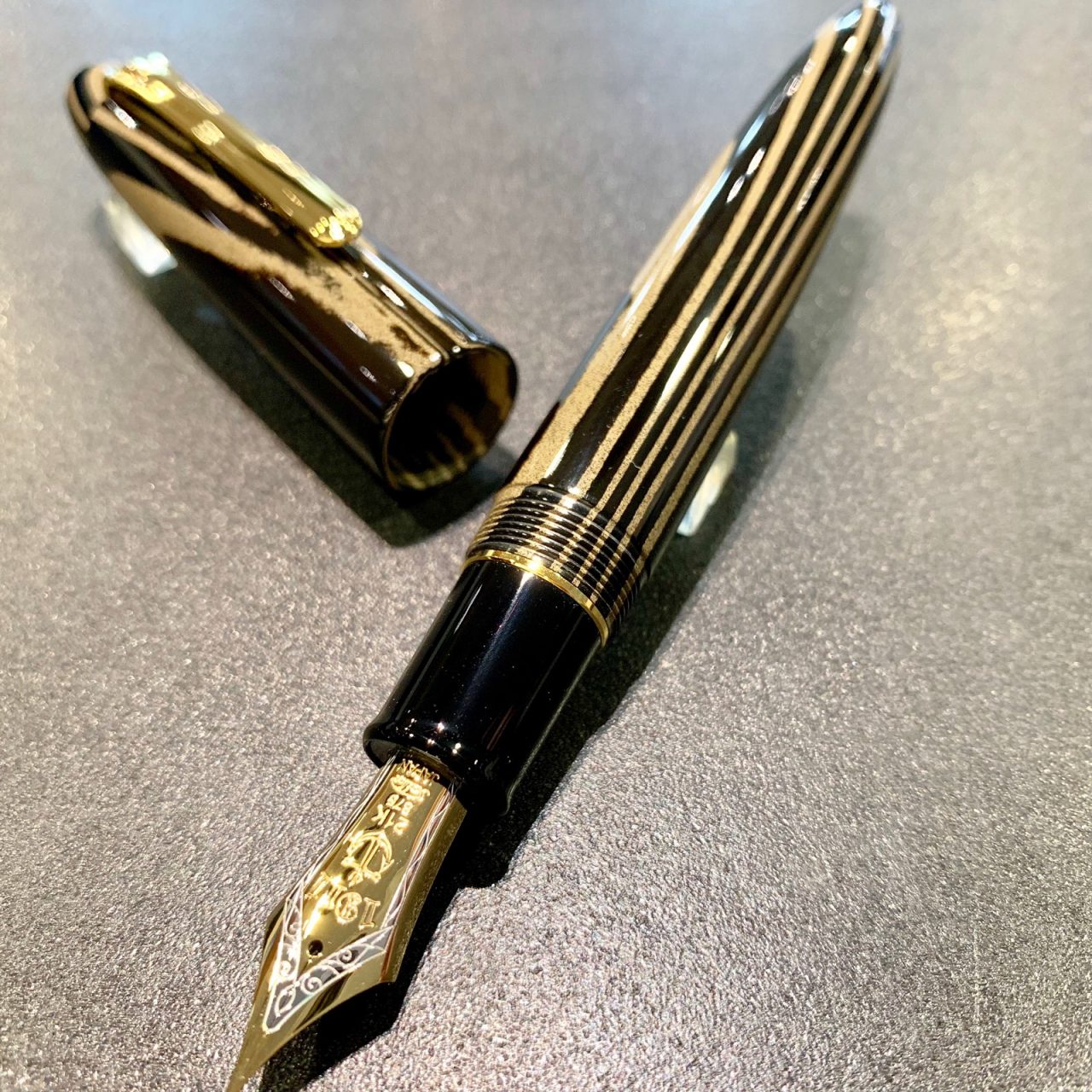 キングプロフィットの迫力のある大きさと21K大型ペン先、そしてこの2本とないそれぞれ柄の出方が違う積層エボナイトボディを存分にお楽しみくださいませ。