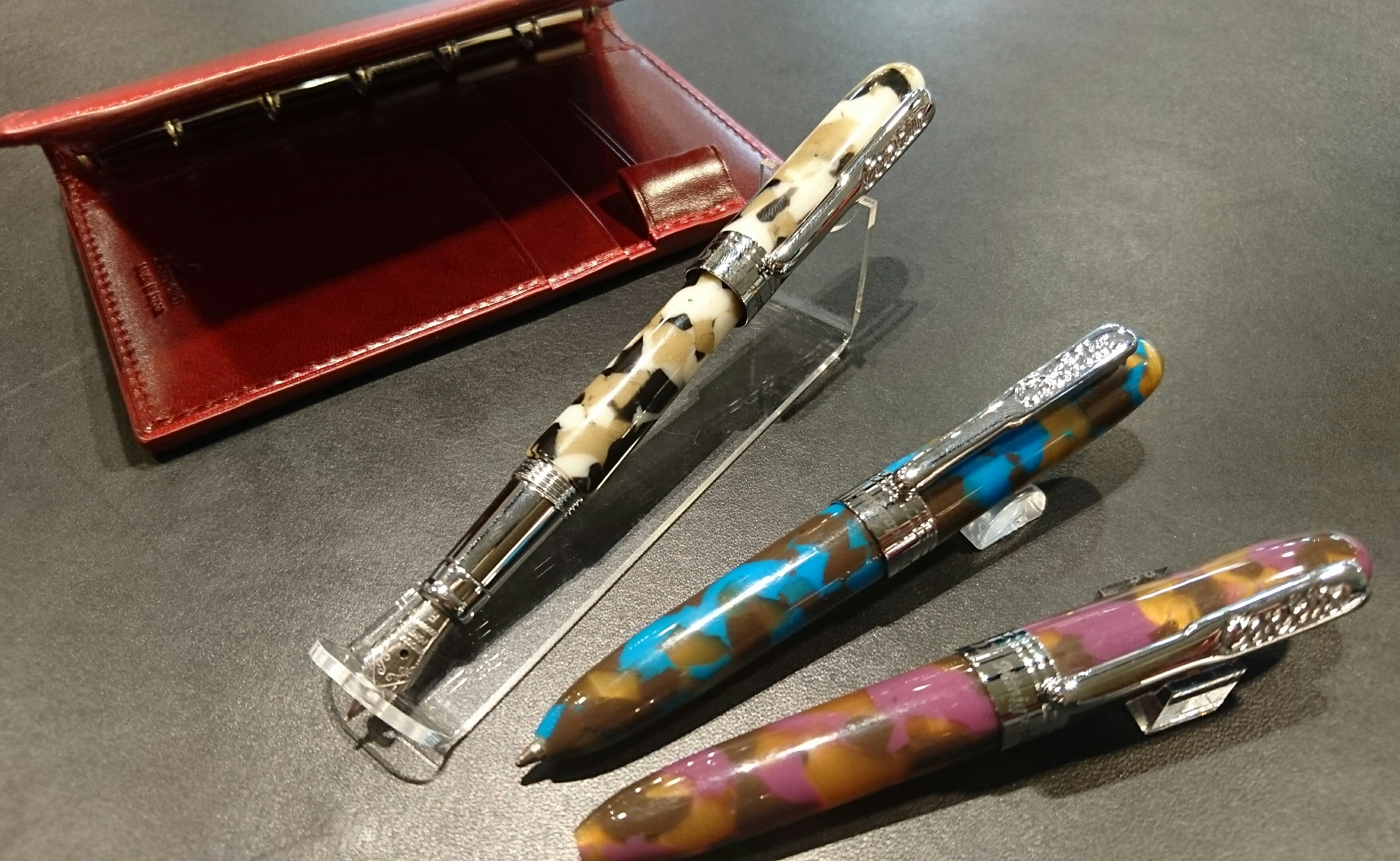 高級感漂うマーブル模様の万年筆で細字と中字があります。