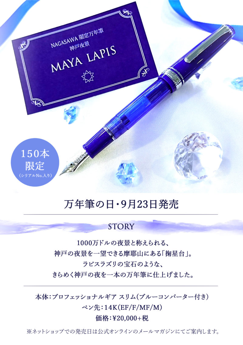 明日9月23日・万年筆の日に、ナガサワオリジナル限定万年筆が新たに発売されます。
