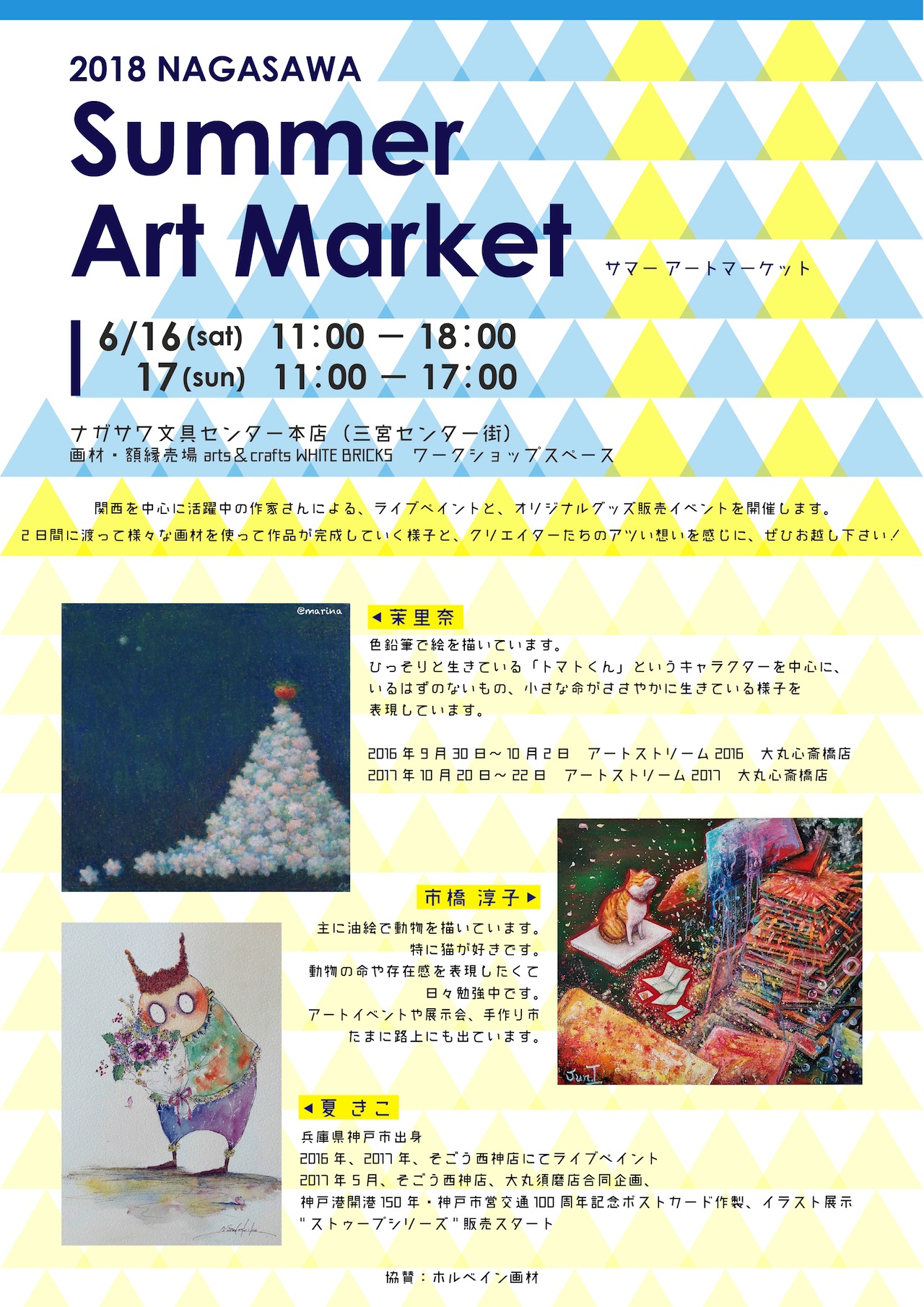 本店関西で活躍中の作家さんたちによるライブペイントと、オリジナルグッズ販売イベント 『2018 NAGASAWA サマー アートマーケット』開催します。