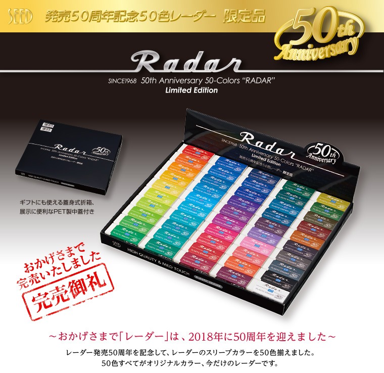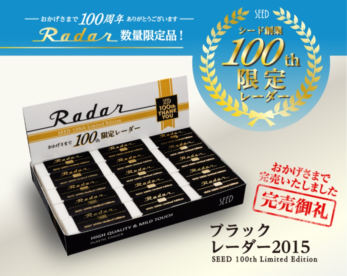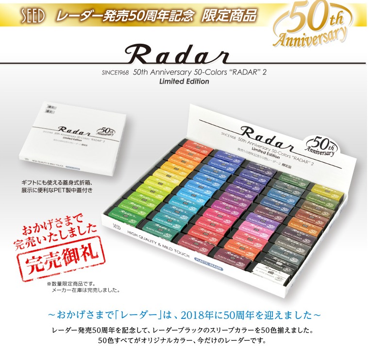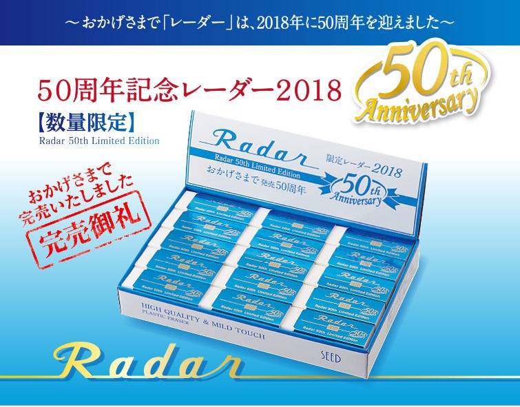 以前にご紹介しましたSEED(シード)のロングセラー消しゴム「Radar(レーダー)」が2018年に誕生50周年を迎えました。