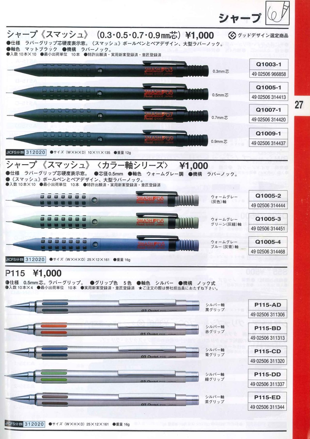 1986年に発売された製図用シャープペンシル「グラフ1000フォープロ」から一般用に開発されたシャープペンシルがこのスマッシュだそうです。