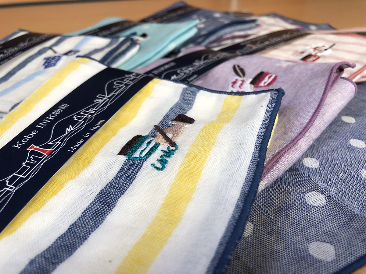 神戸にちなんだモチーフを丁寧な機械刺繍で施しています。