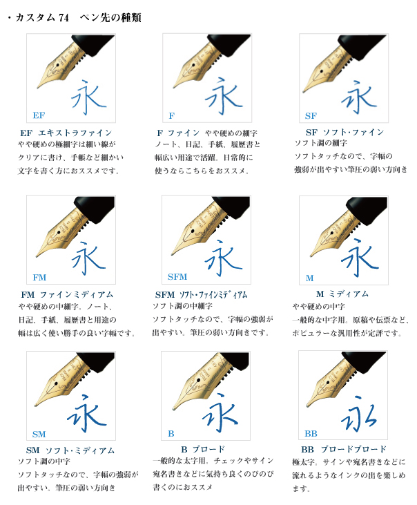 メーカーや万年筆モデルによって字幅ラインナップは異なります。
