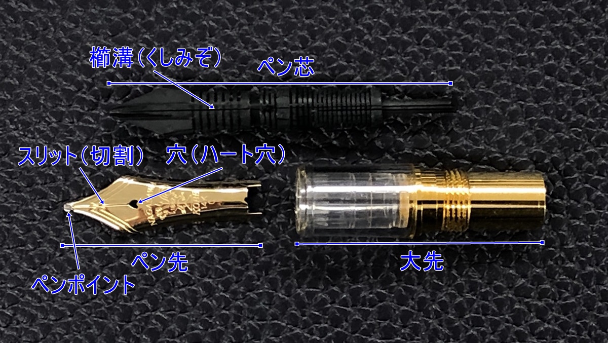ペン先は、ペン先(金属)とペン芯で構成されています。