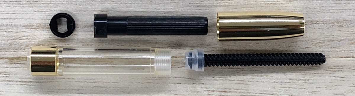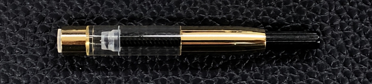 コンバータの形状は様々ですが、一般的なコンバーターはご覧のように、注射器のような構造となっており、中のピストンを上下させることでペン先からインクを取り込みます。